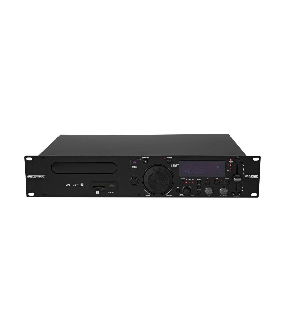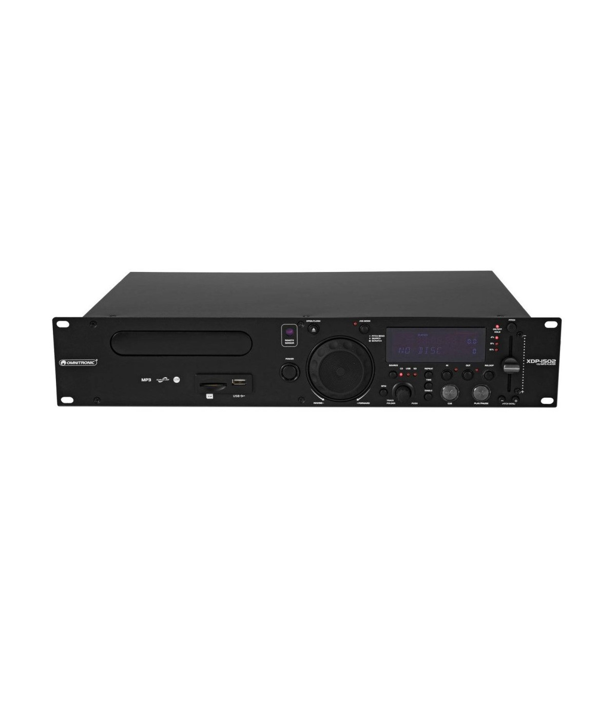 L'OMNITRONIC XDP-1502 è un lettore CD/MP3 che occupa solo 2 unità di rack in altezza, ma è dotato di funzioni intuitive quali il controllo del pitch, il beat matching e i loop senza interruzioni. riproduce CD audio, CD-R e CD MP3 e offre le connessioni necessarie per supporti USB e SD fino a 64 GB.