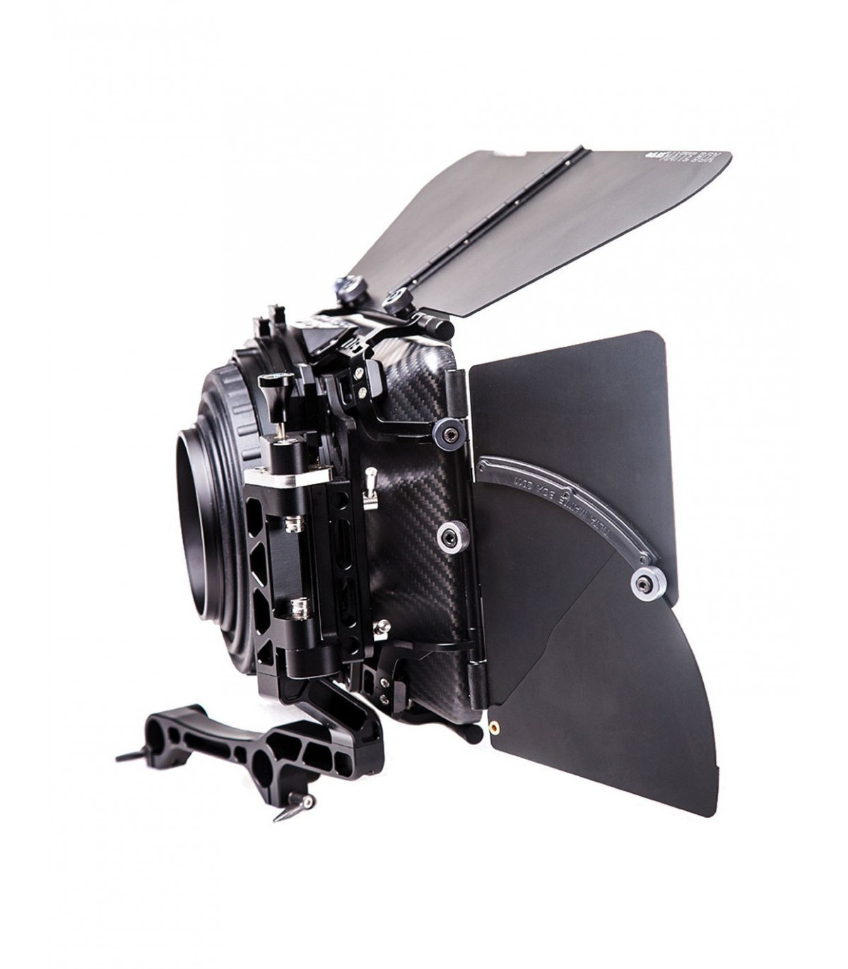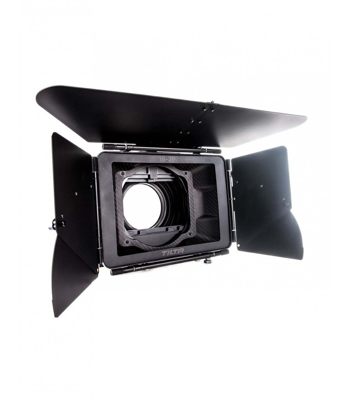 Tilta MB-T04 4 x 5.65" Carbon Fiber Matte Box, Compatible with 19mm Systems, Swing Away Design, 4 x 5.65" Rotating Filter Holders, French Flag & Side Wings Reduce Flare, 15mm Rod Adapter Included, 80, 90, 114, 134mm Lens Adapters, Lightweight, Carbon Fiber Construction